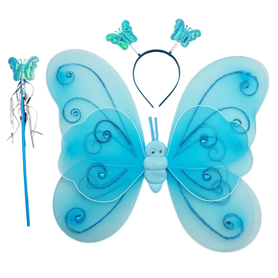 KIT ALAS MARIPOSA SENCILLO Contiene: Diadema, Alas, Vara decorada. Material: Tela Iva Incluido. Costo de...