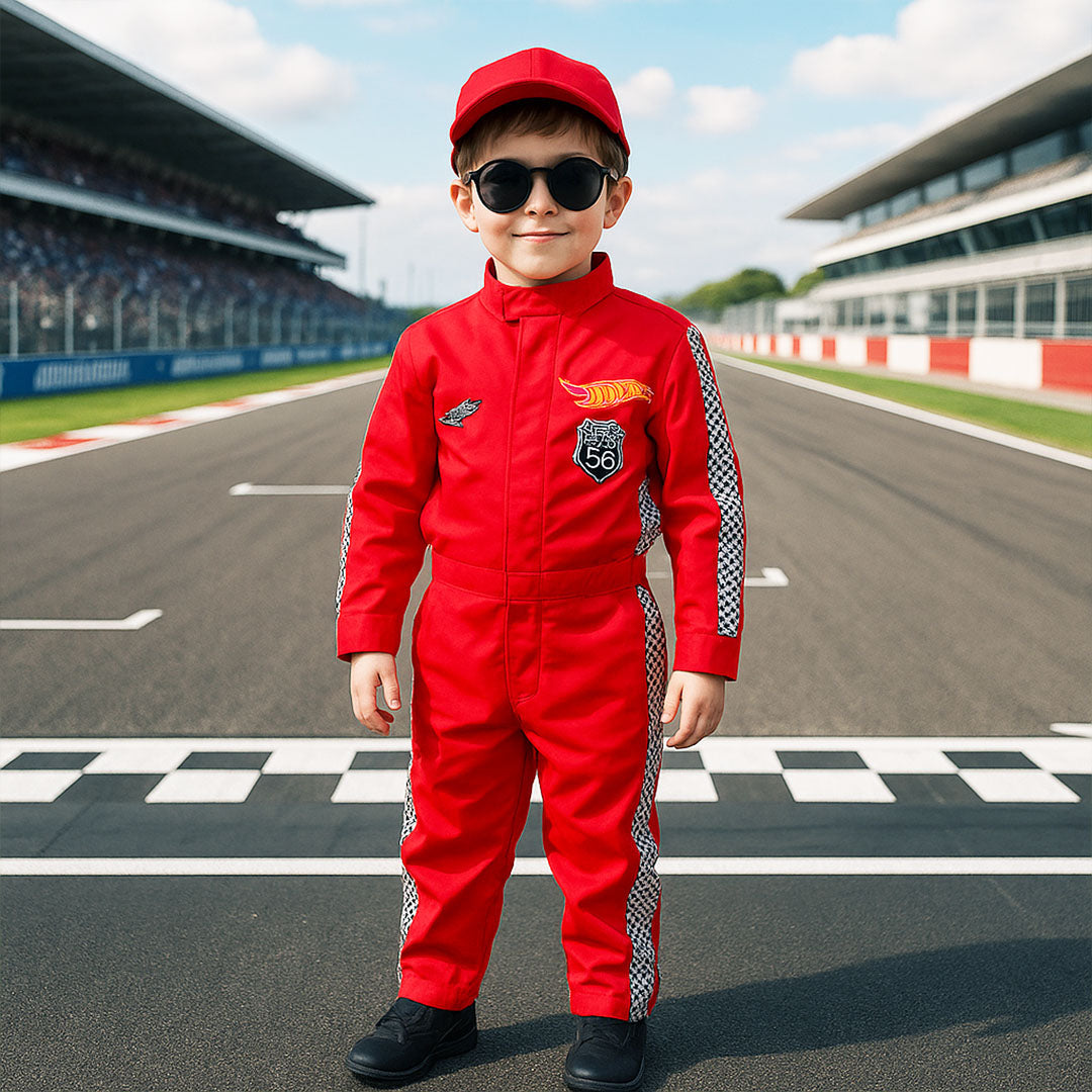 A toda velocidad hacia la diversión. Este disfraz de corredor de autos mezcla estilo y emoción, perfecto para fiestas, juegos y eventos temáticos. ¡Listo para arrancar la aventura!